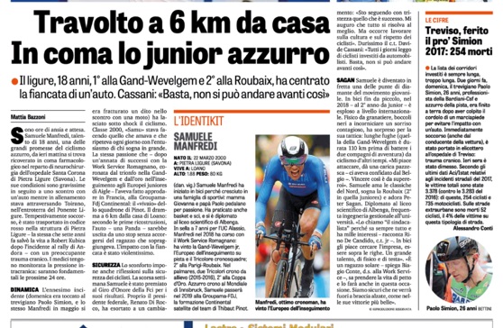 I giornali locali, a onor del vero, sono soliti fare una sorta di approfondimento di maniera. Vanno ad ascoltare gli amici, tracciano il solito ritratto della vittima, inevitabilmente dipinto come un bravo ragazzo o un grande lavoratore, pieno di amici e di interessi nel mondo del volontariato. Quasi che, per inquietante proprietà transitiva, l’investimento sarebbe “accettabile” se la vittima fosse un bad boy o uno scansafatiche. In rarissimi casi, invece, ci si sofferma sulla dinamica dell’incidente e, ancor meno, sulle responsabilità dell’uno o dell’altro protagonista, quasi che fosse un dettaglio, un inevitabile dazio da pagare al destino. Chi scrive è stato particolarmente colpito da un terribile incidente avvenuto a Barzana, in provincia di Bergamo: un giovane ciclista alle soglie del professionismo, è stato travolto ed ucciso da un’automobile che proveniva in senso opposto e che aveva invaso la corsia opposta per effettuare un sorpasso, oltretutto vietato dalla doppia riga continua di mezzeria. Impatto violentissimo e morte sul colpo, in un tratto di strada tutt’altro che pericoloso. Ebbene, nei giorni successivi alla tragedia – accanto ai ricordi, alle omelie e alle recriminazioni per una vita spezzata agli albori – non c’era neppure un filo di indignazione per sottolineare che all’origine della tragedia c’era una terribile negligenza, una sorta di atto di superbia motoristica lungo una strada che pure viene legittimamente percorsa da ciclisti e pedoni. Ovviamente, passata l’onda emozionale non è rimasto che lo strazio dei genitori, una maglietta e un mazzo di fiori posti sul guardrail a imperitura memoria. Ennesima croce laica di una strage impunita e che, se non fosse una pietosa bugia, si potrebbe dire che sembra senza soluzione.