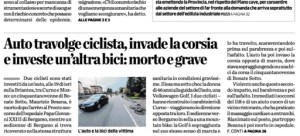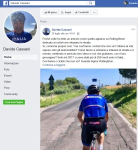 Intendiamoci, raccontare di biciclette – non dico ciclismo, che sarebbe troppo – è sempre cosa buona e giusta ma l’assioma secondo il quale “pedalo e dunque sono” è un cartesianismo un po’ troppo spinto. In questa fase storica – e meno male, direi io – il mondo del ciclismo sta vivendo un momento di grande esposizione mediatica, inversamente proporzionale – se ci riflettete un attimo – al numero degli incidenti e delle vittime. Si parla tanto di ciclismo ma, questo è l’altro lato della medaglia, sulle strade ci si fa male (e si litiga con gli automobilisti) come e più di prima.